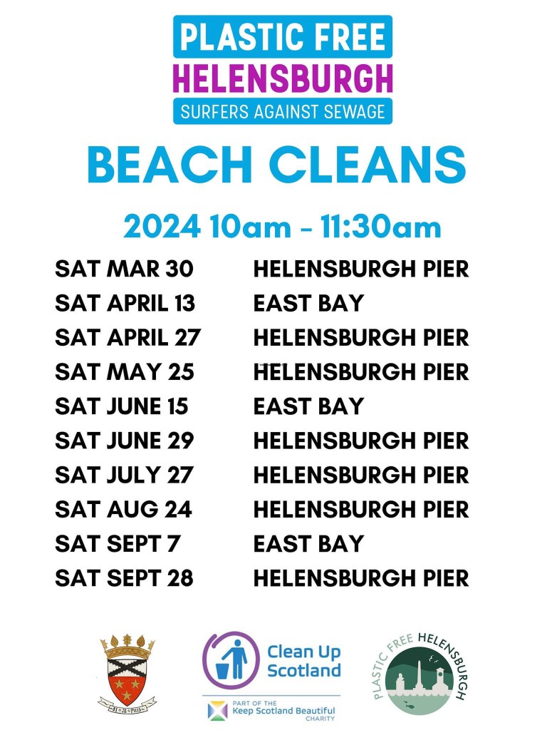Help us keep Helensburgh looking as beautiful as possible by helping out at our beach cleans. You don’t need to bring anything; we’ll provide pickers and bags. Just come on down and get stuck in. Here’s the dates for 2024.